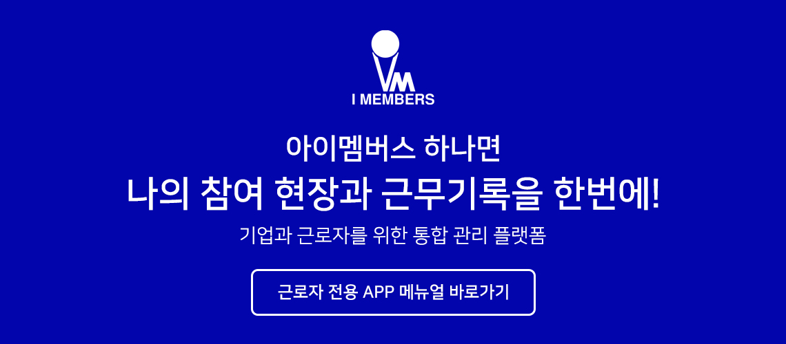 아이멤버스는 근로자와 관리자가 함께 사용하는 통합 관리 플랫폼입니다.